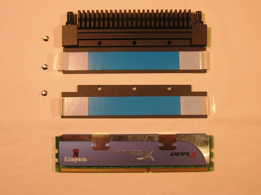 Smontando con delicatezza il dissipatore standard dei nostri 2 moduli e pulendo con dell’alcool i residui della pasta termica residua attaccata ai chip, il nostro modulo di RAM è pronto per essere assemblato.